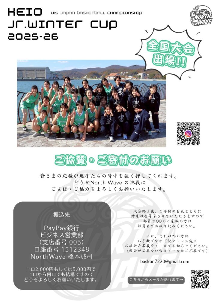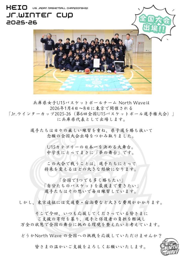Jr.ウインター出場へのご協賛・ご寄付のお願い